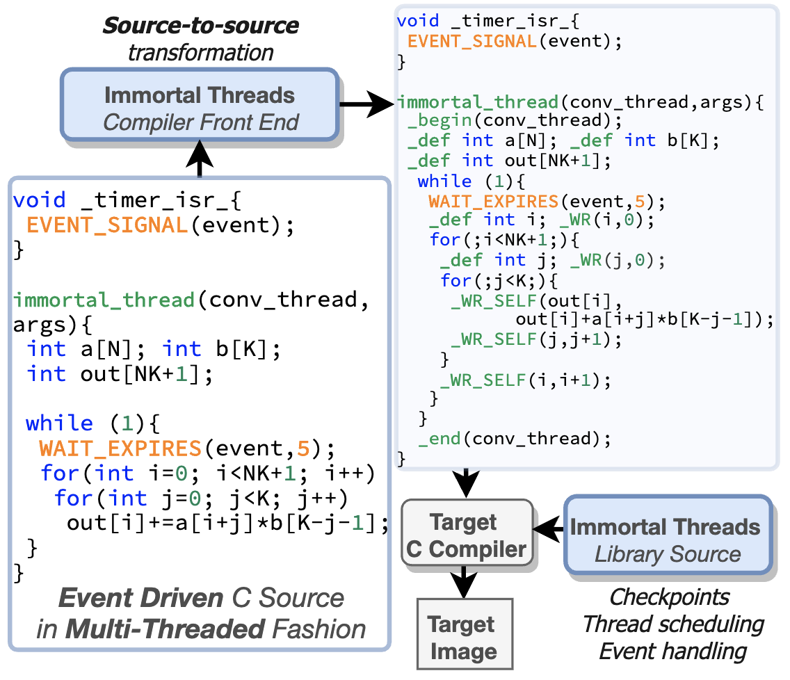 Immortal Threads: Multithreaded Event-driven Intermittent Computing on Ultra-Low-Power Microcontrollers